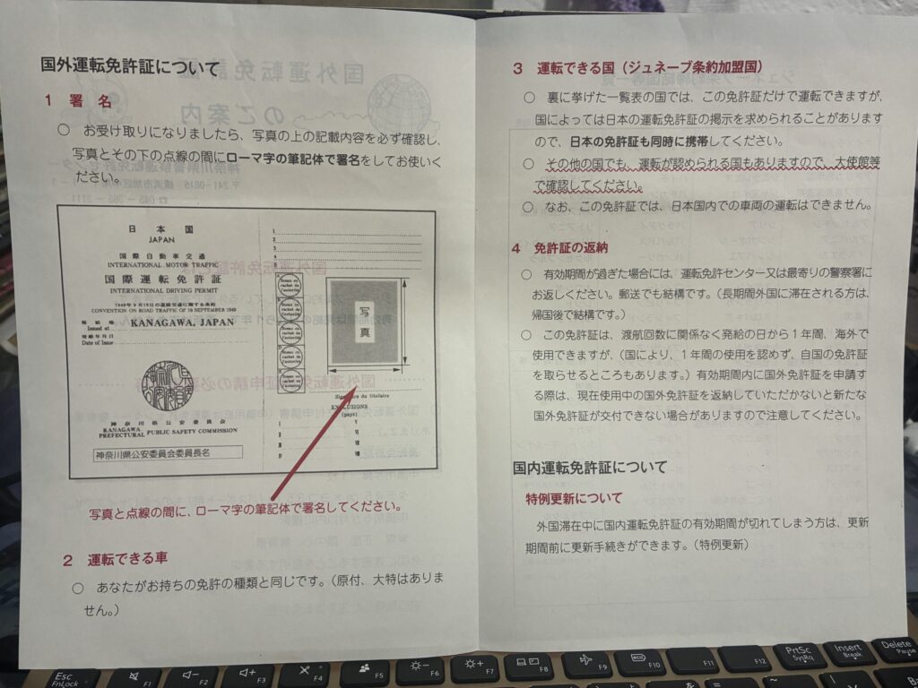 ただし、日本の免許とは少し違い、実際には日本の運転免許証を翻訳した証明書のようなものです。
