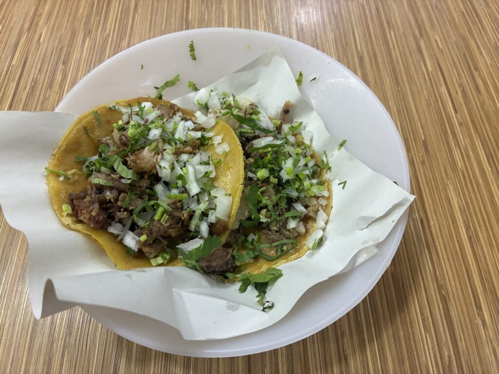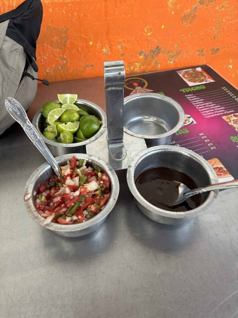 → タコスは「肉+玉ねぎ+パクチー+サルサ」が基本。トッピングで入れられる店もあります。