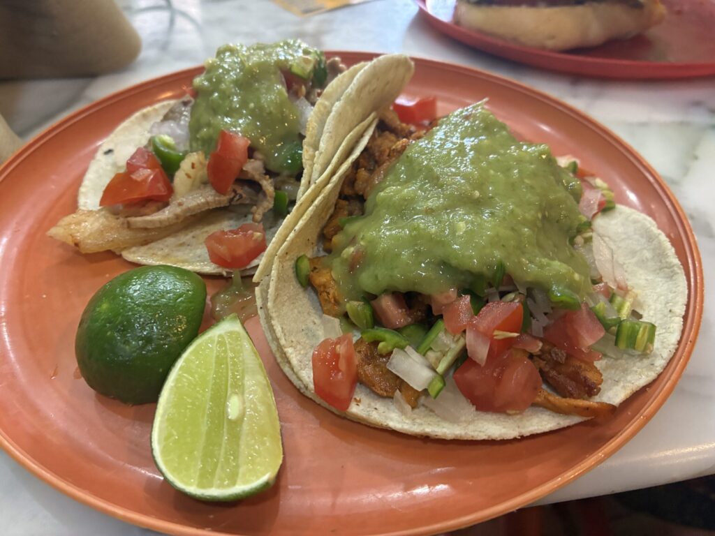 右のタコスはCon todoで頼んだにもかかわらず、パクチー抜きでした。