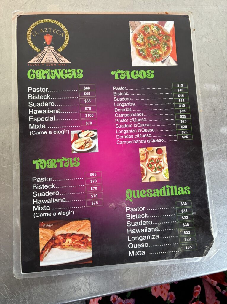 他にもBistekタコス2個とPastorのGringas(小麦のトルティージャでサンドにしたもの)を注文。
