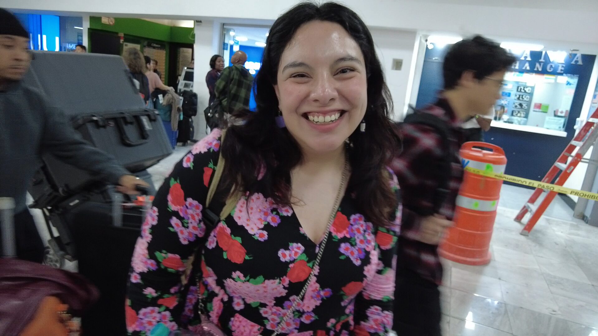 駆け寄ってくるメキシコ妻、相変わらず花柄が好きみたい。