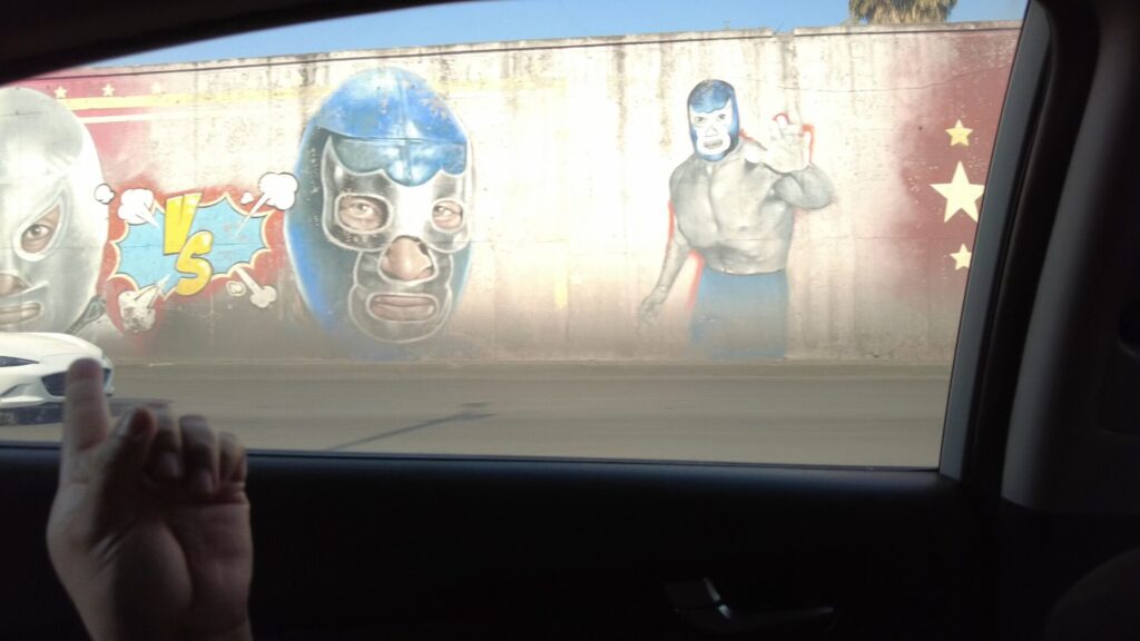 プロレスラー、メキシコ国旗などの落書きが多い。