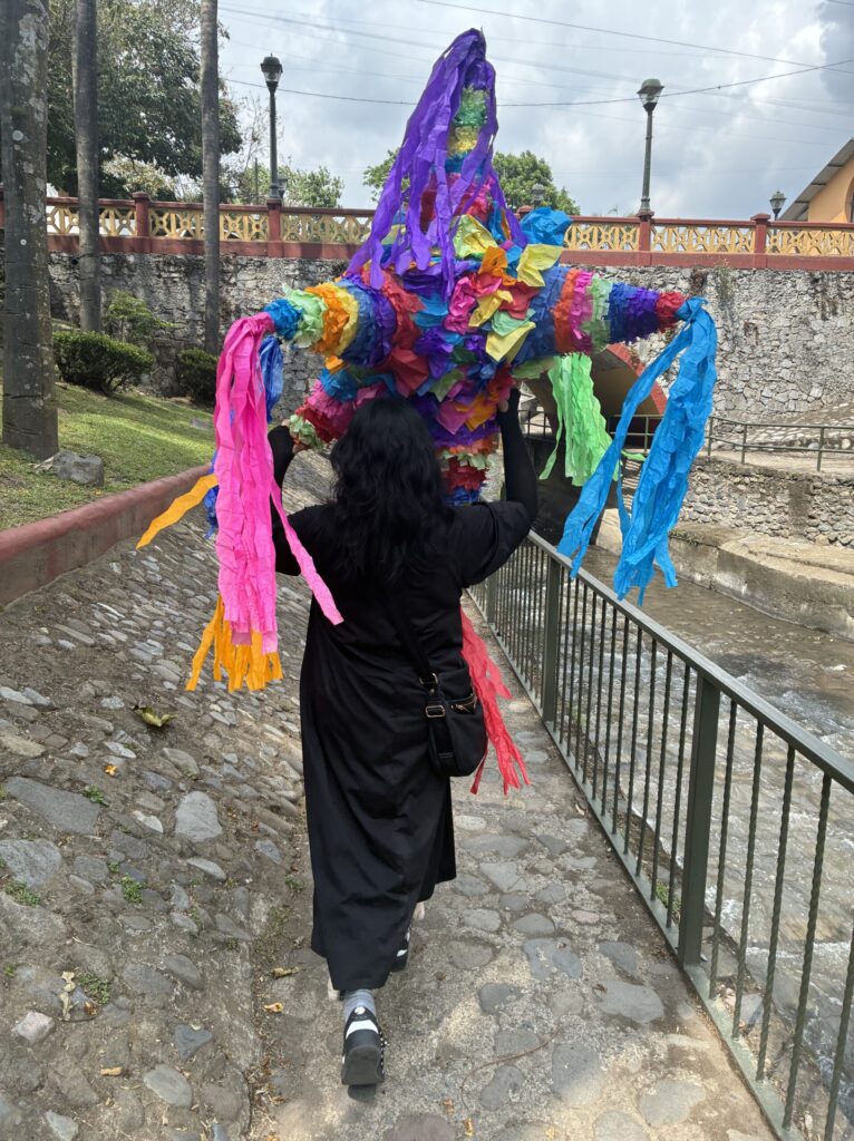 交代でピニャタを持って帰る。中身は空だから重くないものの、とにかく大きかった。