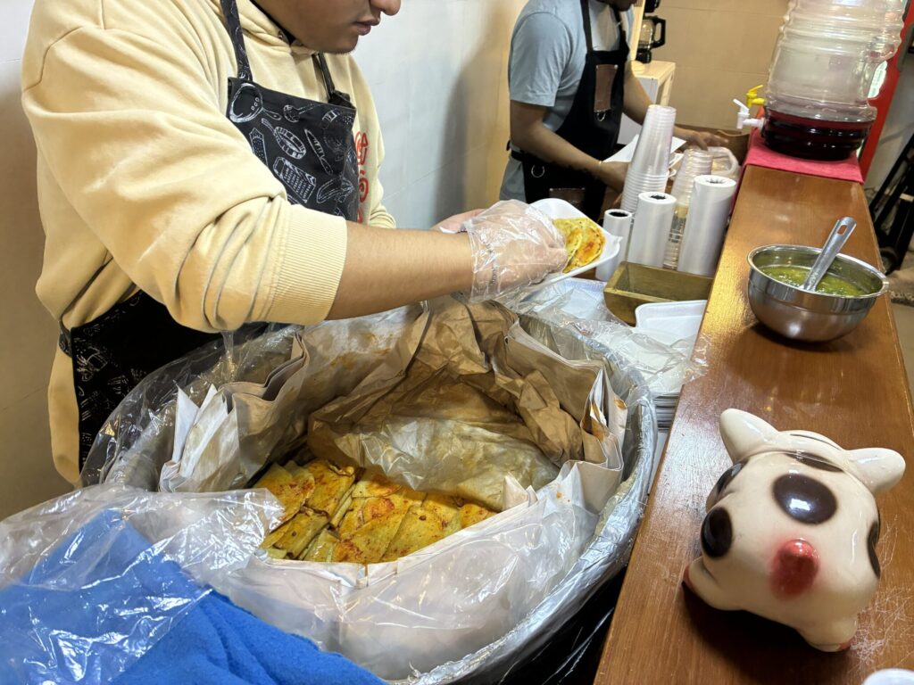 Tacos de canastaという蒸したタコスだった。