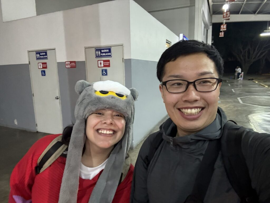 オリサバのバスターミナルにて。G-dragonプロデュースのZOAハットを嬉しそうにかぶるメキシコ妻。