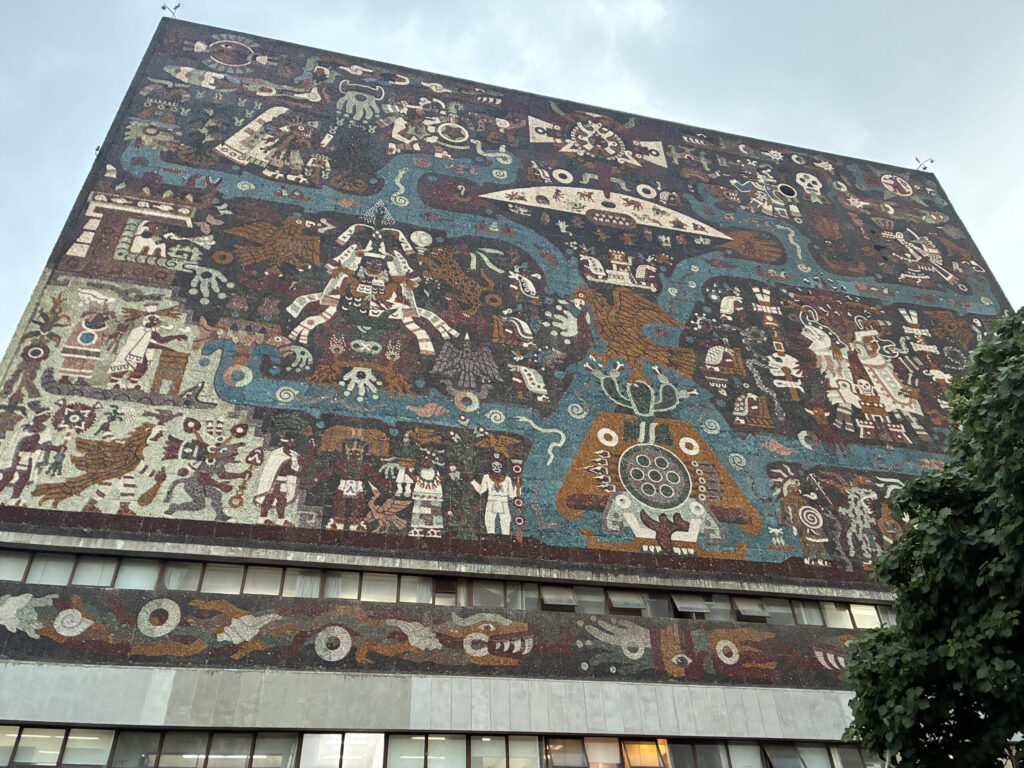 特に有名なのが中央図書館で、建物の外壁にはメキシコの歴史を表した巨大なモザイク壁画が描かれています。