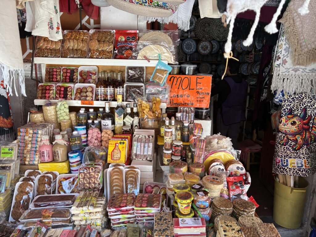 プエブラ名物の伝統菓子が並ぶ通りで、お土産探しにぴったりの場所です。カモテなどの甘いお菓子が有名で、食べ歩きも楽しめます。