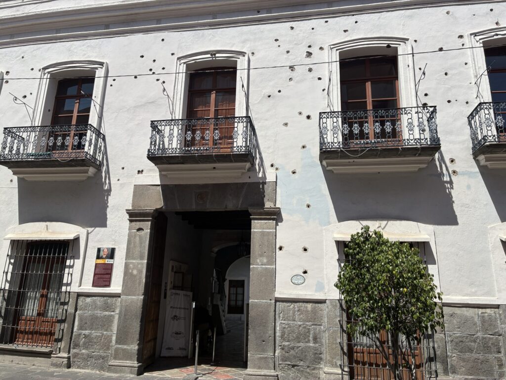メキシコ革命の歴史を学べる博物館で、革命のきっかけとなった重要な出来事に関する展示が行われています。博物館の外壁には革命時につけられた銃痕がそのまま残っています。