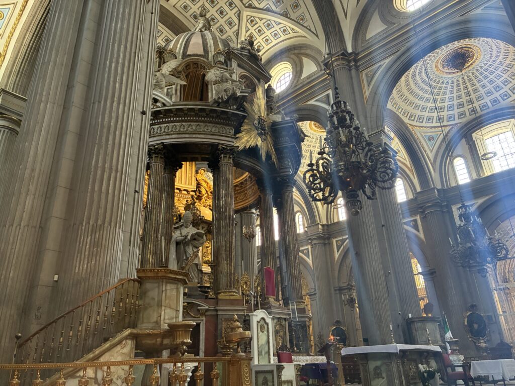 ソカロのすぐ横に位置するメキシコ最大級の大聖堂で、外観の迫力はもちろん、内部の豪華な装飾が見どころです。特に金色の祭壇は圧巻で、スペイン統治時代の影響を色濃く感じることができます。入場は無料なので、必ず立ち寄りたいスポットです。