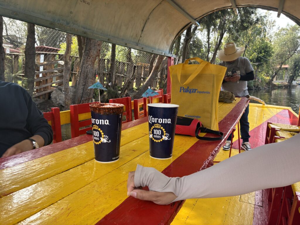 ミチェラダを飲みながら運河を進むのはソチミルコでも有名なアクティビティです。