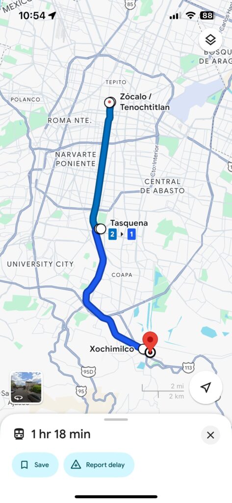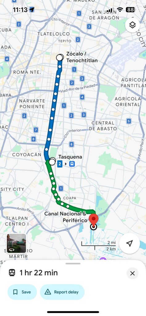 メキシコシティ中心部からはメトロとライトレールを使って1時間半ほどです。